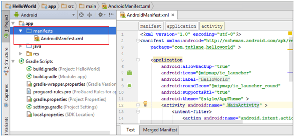 Once we set up an Android development environment using android studio and if we create a sample application using android studio, our project folder structure will be like as shown below. In case if you are not aware of creating an application using an android studio please check this Android Hello World App.